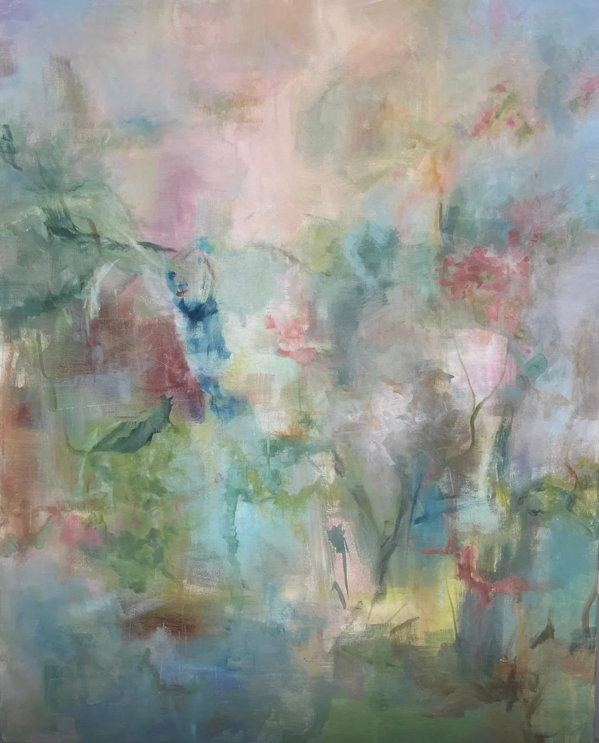 It wasn’t something I planned, necessarily. The suggestion of flowers often appeared with just a few brushstrokes. These paintings sit between abstraction and suggestion, rather than focusing on specific forms.