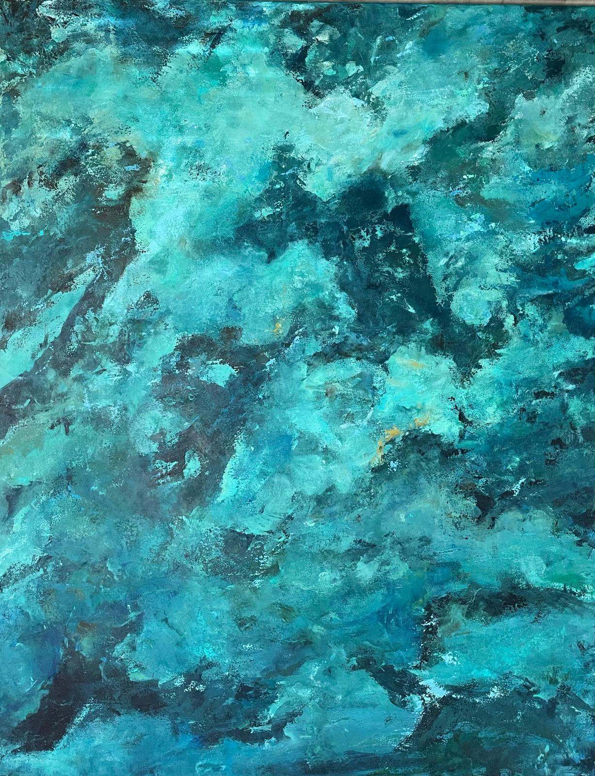 The view is constantly changing. Sometimes it’s clear, shallow water near the shore; other times, it’s deep blues seen from a boat. These paintings try to capture those moments - the way the sun warms the surface, how light dances across the water, and the quiet calm of being surrounded by the sea.